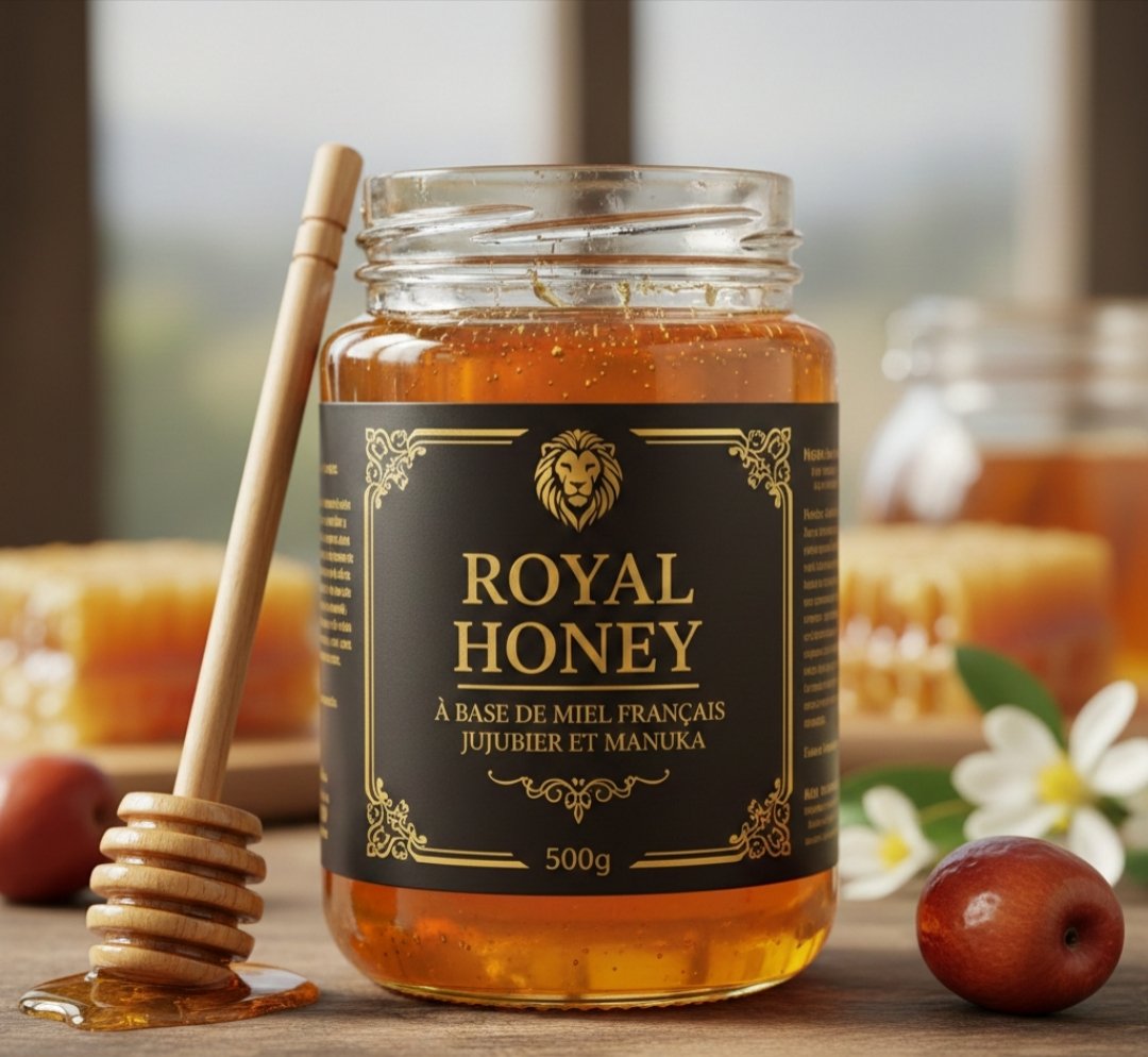 Boostez naturellement votre énergie masculine avec Royal Honey Aphrodisiaque pour Hommes, un mélange 100 % naturel de miels rares et puissants : miel français, miel de jujubier (Sidr) et miel de Manuka pur, associés à de véritables plantes stimulantes telles que ginseng, maca, tribulus, gelée royale, pollen et gingembre.